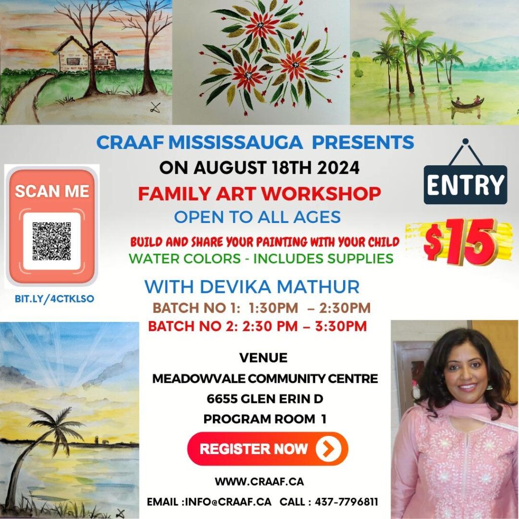 Join us for a delightful watercolor workshop on Sunday, August 18th, 2024, led by the talented artist and educator Devika Mathur. This family-friendly event is open to all ages, making it the perfect opportunity to enjoy a creative day out with your loved ones.